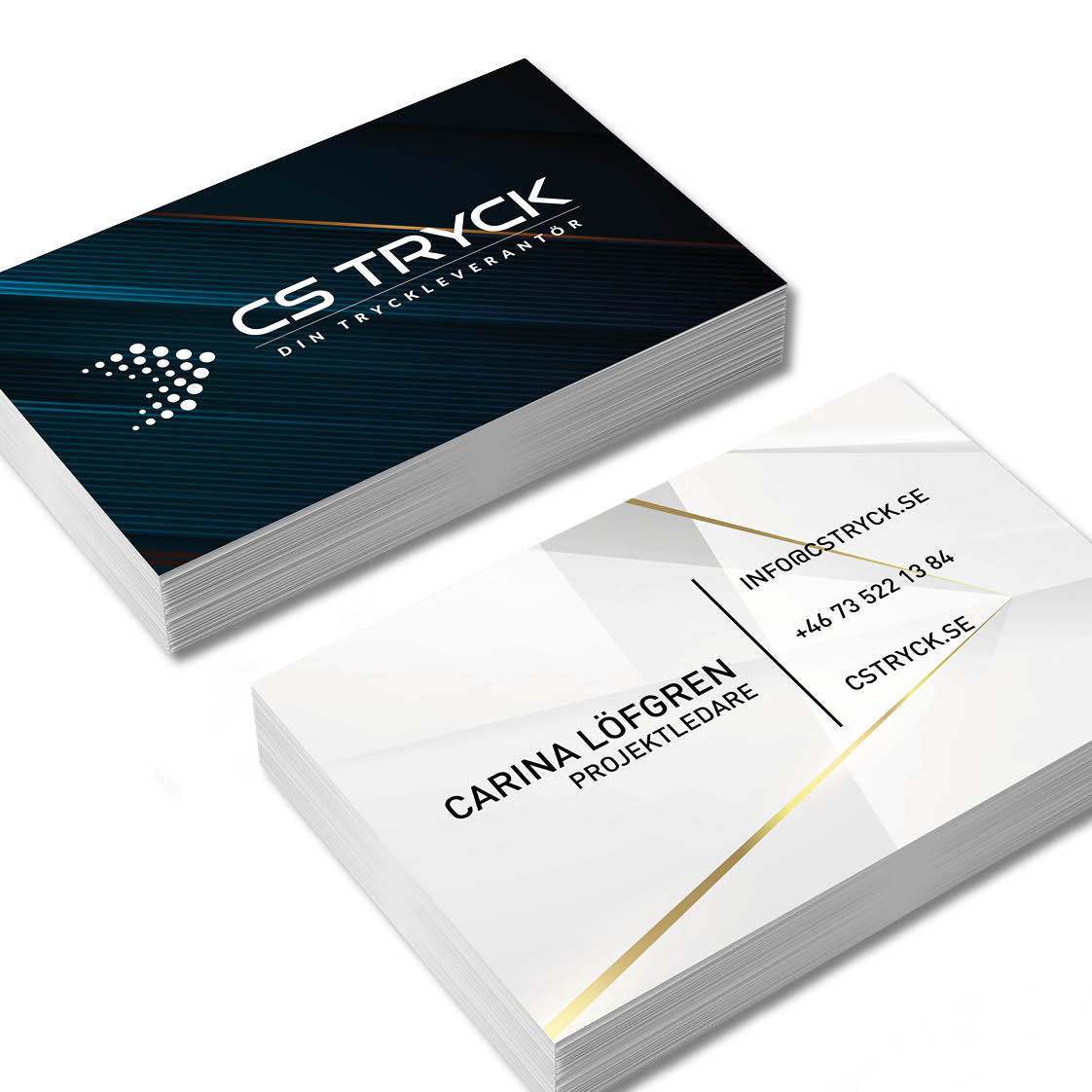Allt börjar med ett visitkort. Ja, visitkortet kan vara ditt viktigaste – och enklaste – hjälpmedel när du skapar ny affärskontakter. Ett snyggt designat visitkort ger ett professionellt intryck. När det gäller visitkort finns det många möjligheter när det gäller trycket. Enkel- eller dubbelsidigt. Möjlighet till olika ytbehandlingar och effekter. Söker du det lilla extra? Kontakta oss för en